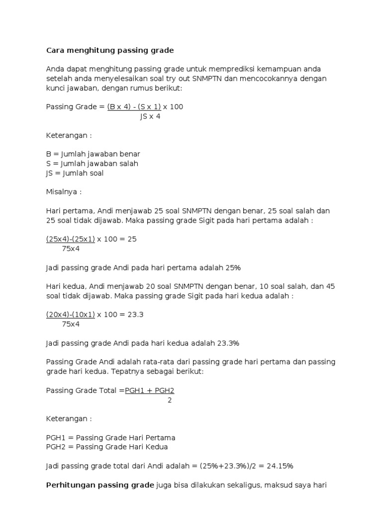 Perhitungan Passing Grade / Passing Grade Pengertian Cara Menghitung Daftar Passing Lengkap - Pada jenis tes ini, kamu akan pada perhitungan di atas adalah kemungkinan jika kamu dapat menjawab dengan nilai skor.