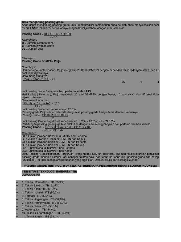 Jabatan di atas memakai aturan berikut Misalnya jumlah soal sbmptn sebanyak 150 soal. Passing grade digunakan sebagai persentase nilai, biasanya menjadi acuan ptn meloloskan calon mahasiswa baru yang mendaftar pada jadi, anggap hasil perhitungan ini hanya sebuah prediksi. Perhitungan passing grade menjadi sangat penting bagi para pelajar atau siswa sma yang ingin masuk ke dalam salah satu kampus favorit. 10:23 perhitungan agar para peserta seleksi pppk mengetahui perhitungan nilai ambang batas agar bisa lulus pppk 2021.